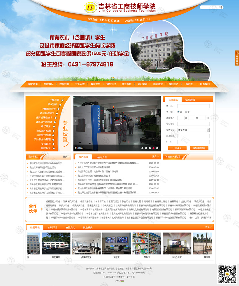 吉林省工商技師學(xué)院始建于上世紀(jì)50年代,是一所以工、商為主,多學(xué)科相互支撐、協(xié)調(diào)發(fā)展的省屬公辦重點(diǎn)職業(yè)院校。學(xué)院坐落在北國(guó)春城長(zhǎng)春市,占地面積99.51畝,建筑面積3.43萬(wàn)平方米。學(xué)院現(xiàn)為中國(guó)烹飪協(xié)會(huì)烹飪名校;中國(guó)商業(yè)經(jīng)濟(jì)學(xué)會(huì)商貿(mào)技工教育研究會(huì)副會(huì)長(zhǎng)單位;吉林省職業(yè)教育先進(jìn)單位;吉林省德育工作先進(jìn)單位;全國(guó)商業(yè)服務(wù)業(yè)校企合作與人才培養(yǎng)優(yōu)秀院校;吉林省教學(xué)管理優(yōu)秀學(xué)校;高技能人才培訓(xùn)基地;吉林省現(xiàn)代服務(wù)業(yè)類(lèi)師資培訓(xùn)基地;吉林省烹飪類(lèi)技師職業(yè)技能鑒定基地;吉林省職業(yè)技能公共實(shí)訓(xùn)基地;國(guó)家職業(yè)技能鑒定所;吉林省外派勞務(wù)基地。