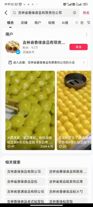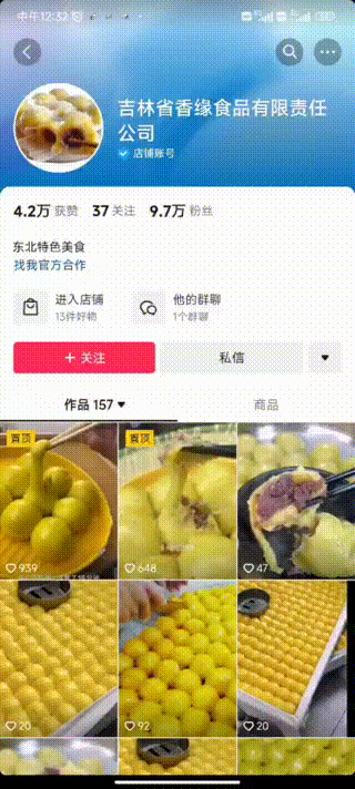 企業(yè)抖音藍v賬號展示——吉林省香緣食品有限責任公司