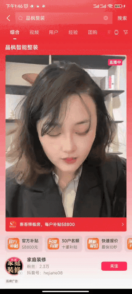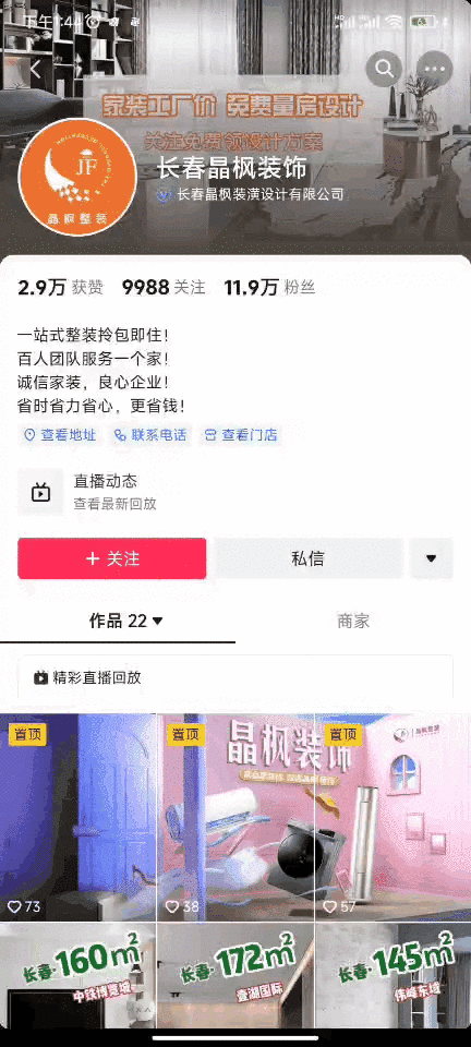 企業(yè)抖音藍(lán)V賬號(hào)展示——長(zhǎng)春晶楓裝飾
